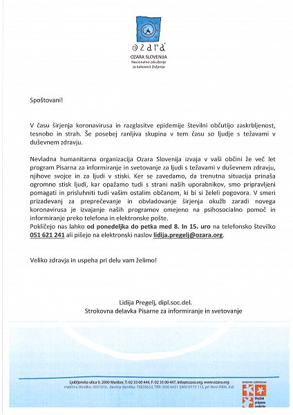 Ob situaciji širjenja koronavirusa in posledično neizbežnim duševnim stiskam ljudi, v katerih se bodo znašli, se odzivajo tudi v Združenju Ozara Slovenija, enoti Nova Gorica.