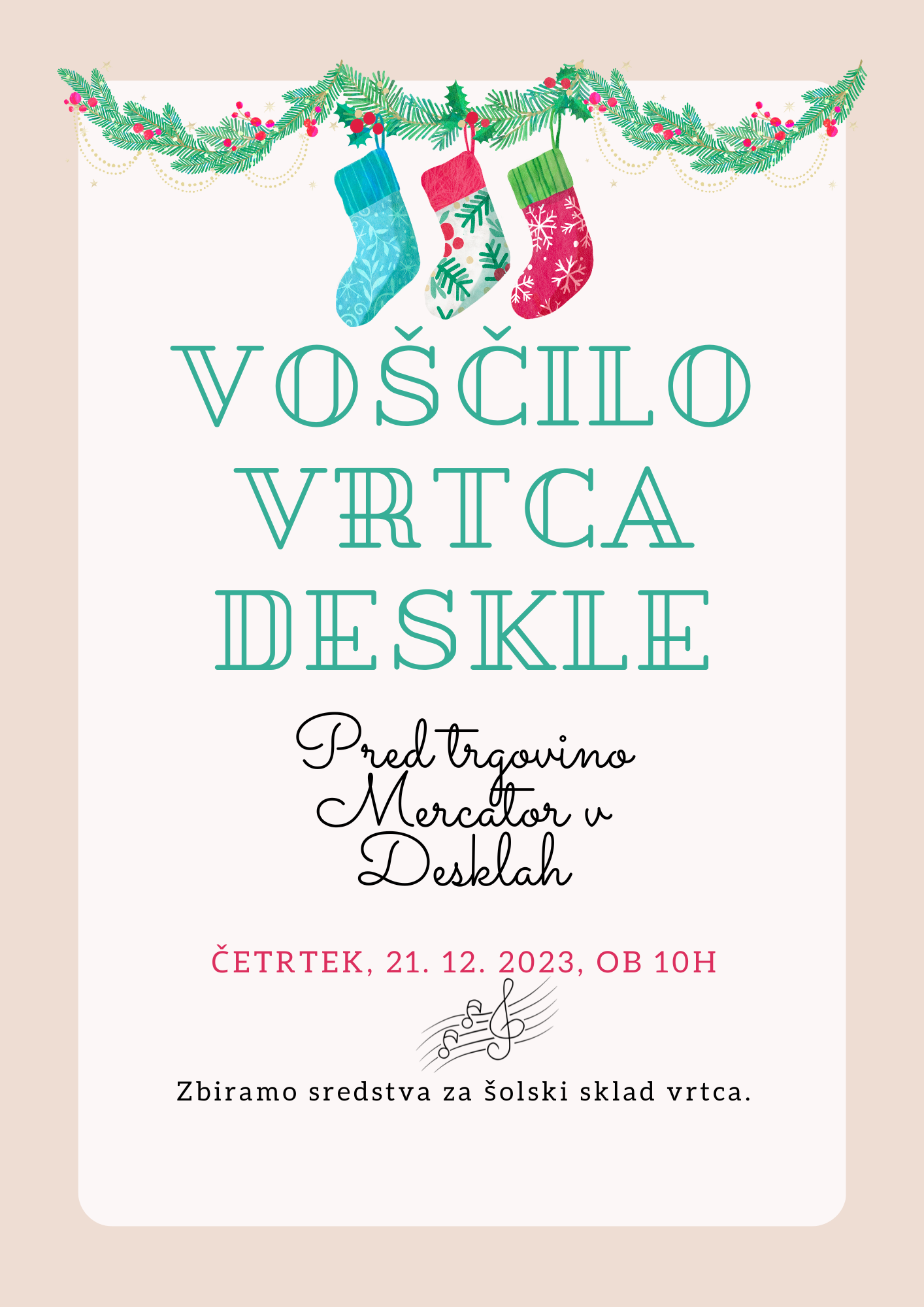 Vabljeni na voščilo Vrtca Deskle, ki bo v četrtek, 21.12.2023 ob 10.uri pred trgovino Mercator v Desklah.